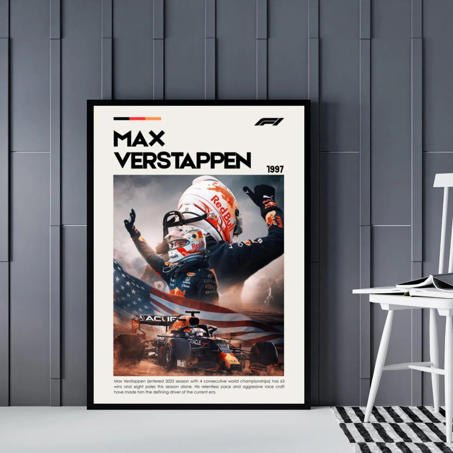 Stunning watercolor prints featuring your favourite drivers from the past and present, beautifully framed in a sleek black modern frame, these prints look amazing in any room.