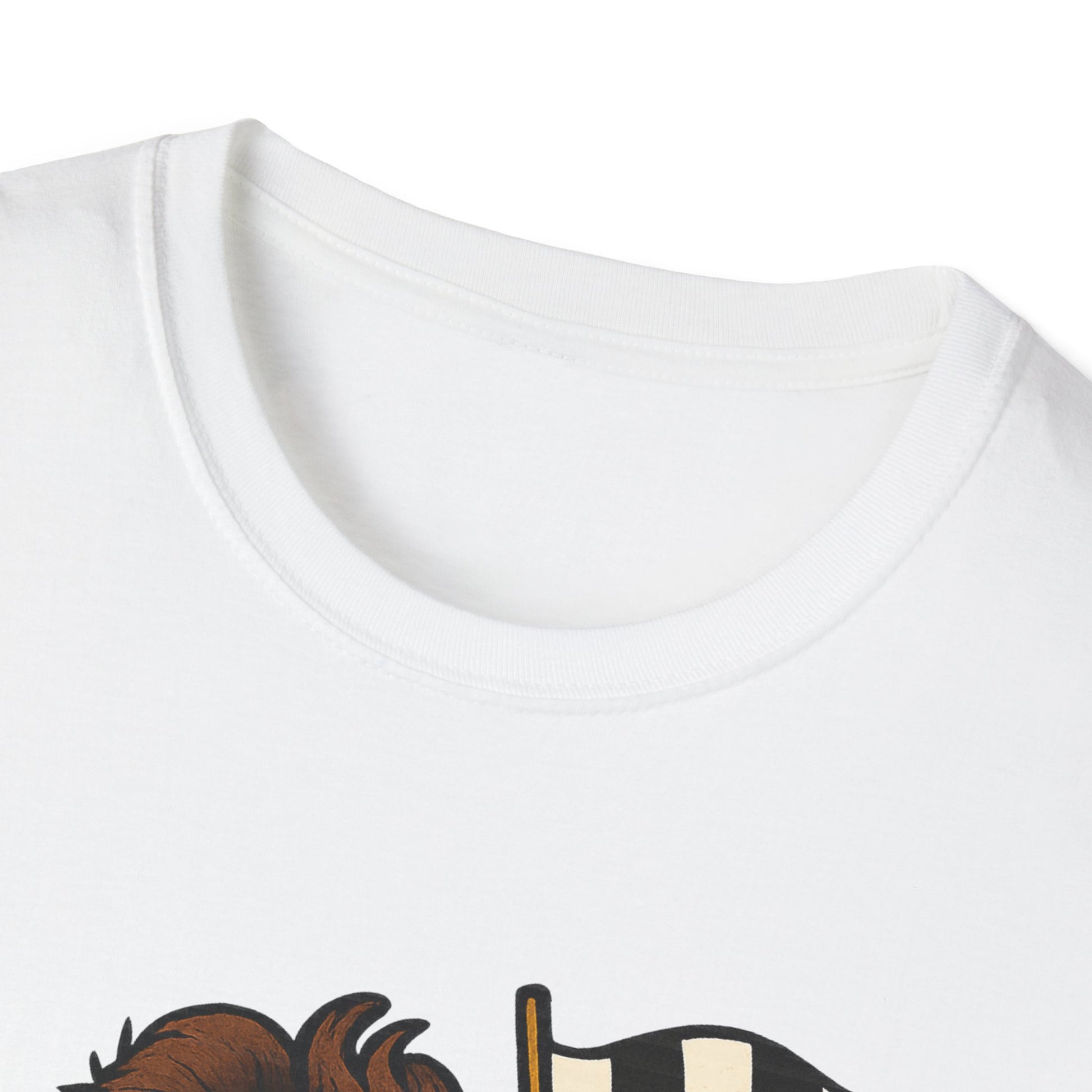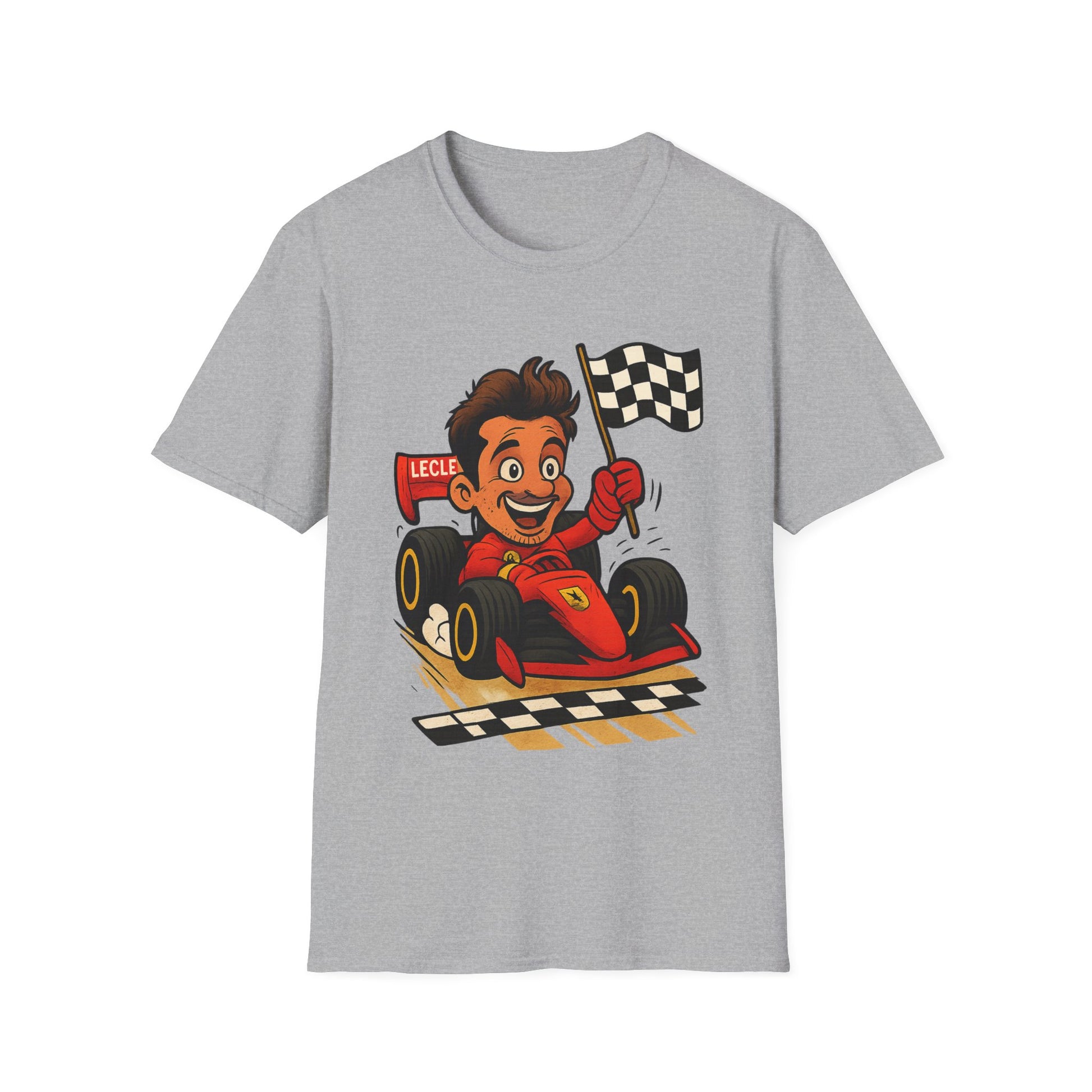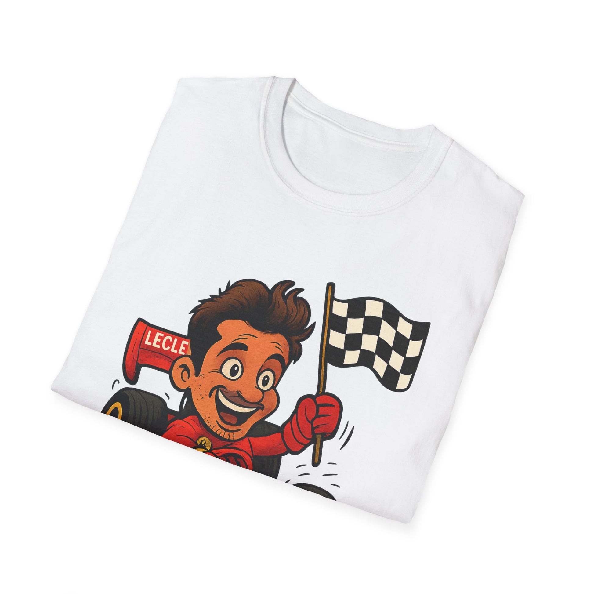 Racing Leclerc Cartoon T-Shirt — Formula 1 Driver Design with Checkered Flag