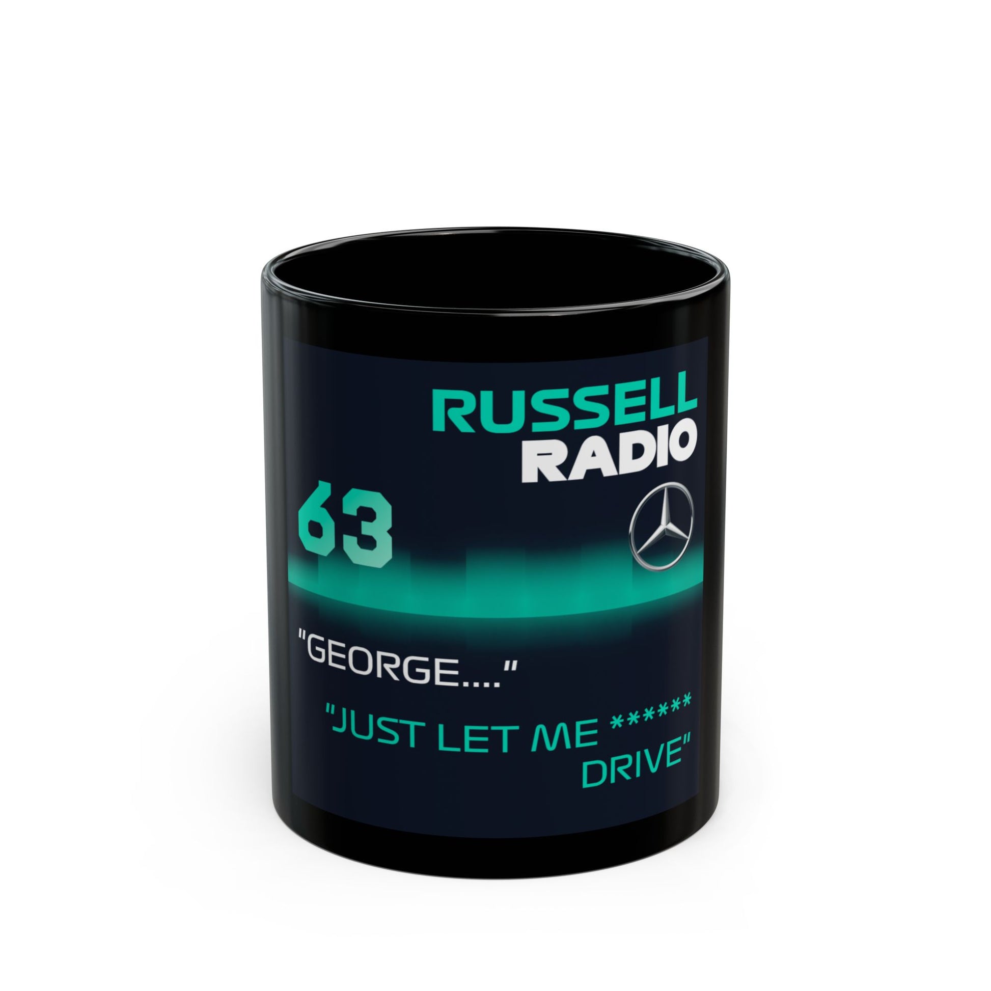 Russell Radio Racing Mug — '63' George 'Just Let Me Drive' Black Coffee Mug (11oz)